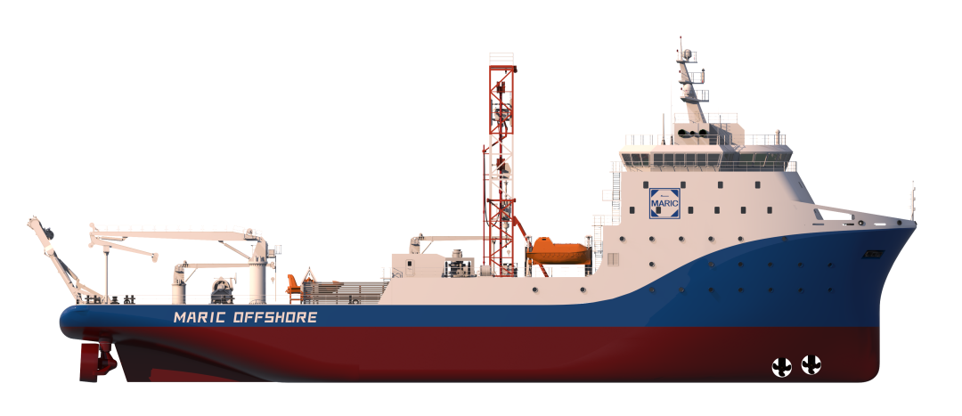 MARIC-CLV 22000海纜施工船采用雙轉盤設計,最大載纜量達22000噸,最大作業水深可達3000米,滿足五級海況下的高效布纜作業。