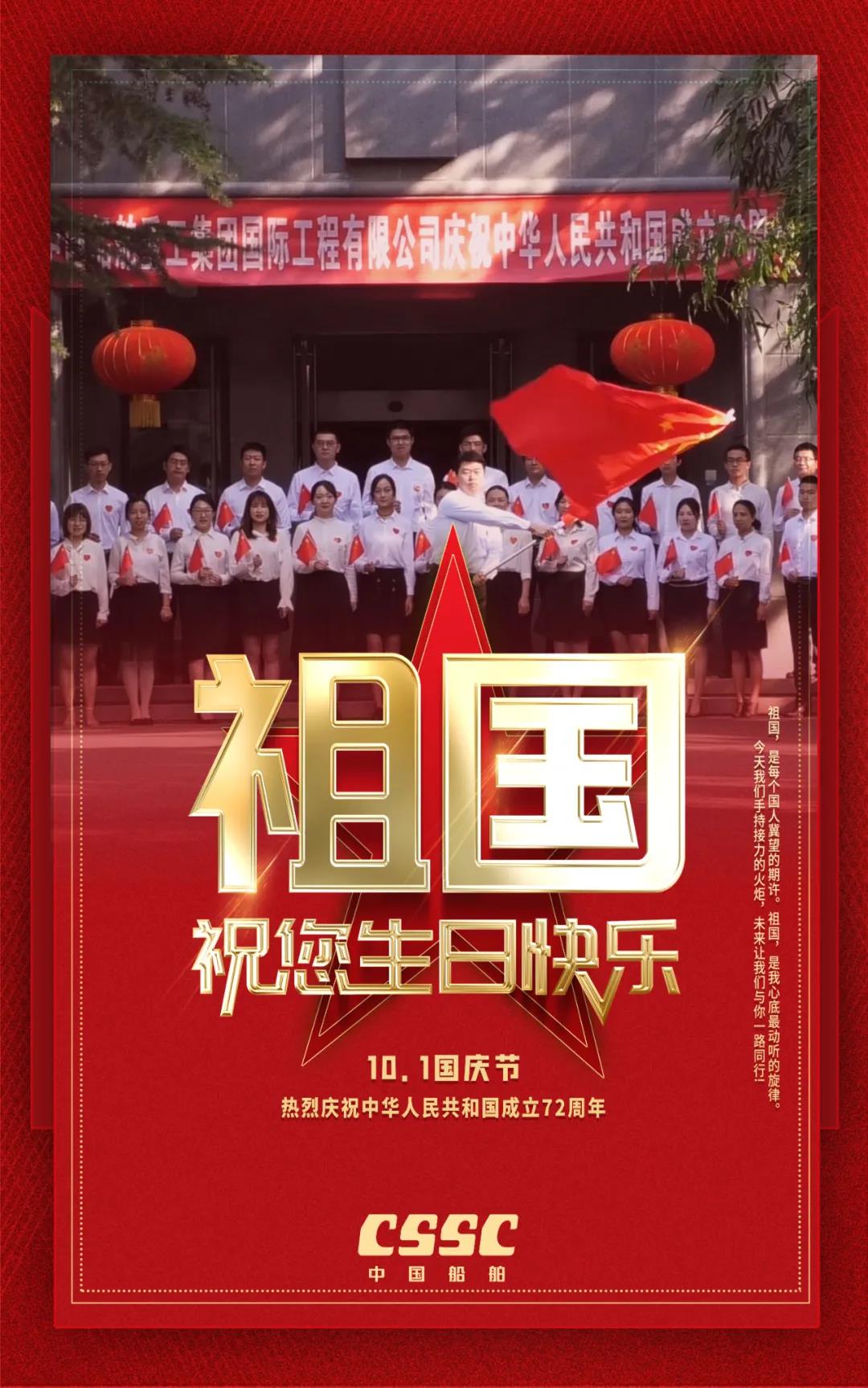 祖國,是每個國人冀望的期許!祖國,是船舶人心底最動聽的旋律!72年來,新中國經(jīng)歷了風(fēng)風(fēng)雨雨;72年過去,成就了盛世風(fēng)華,中國船舶六〇二院全體員工祝新中國生日快樂!