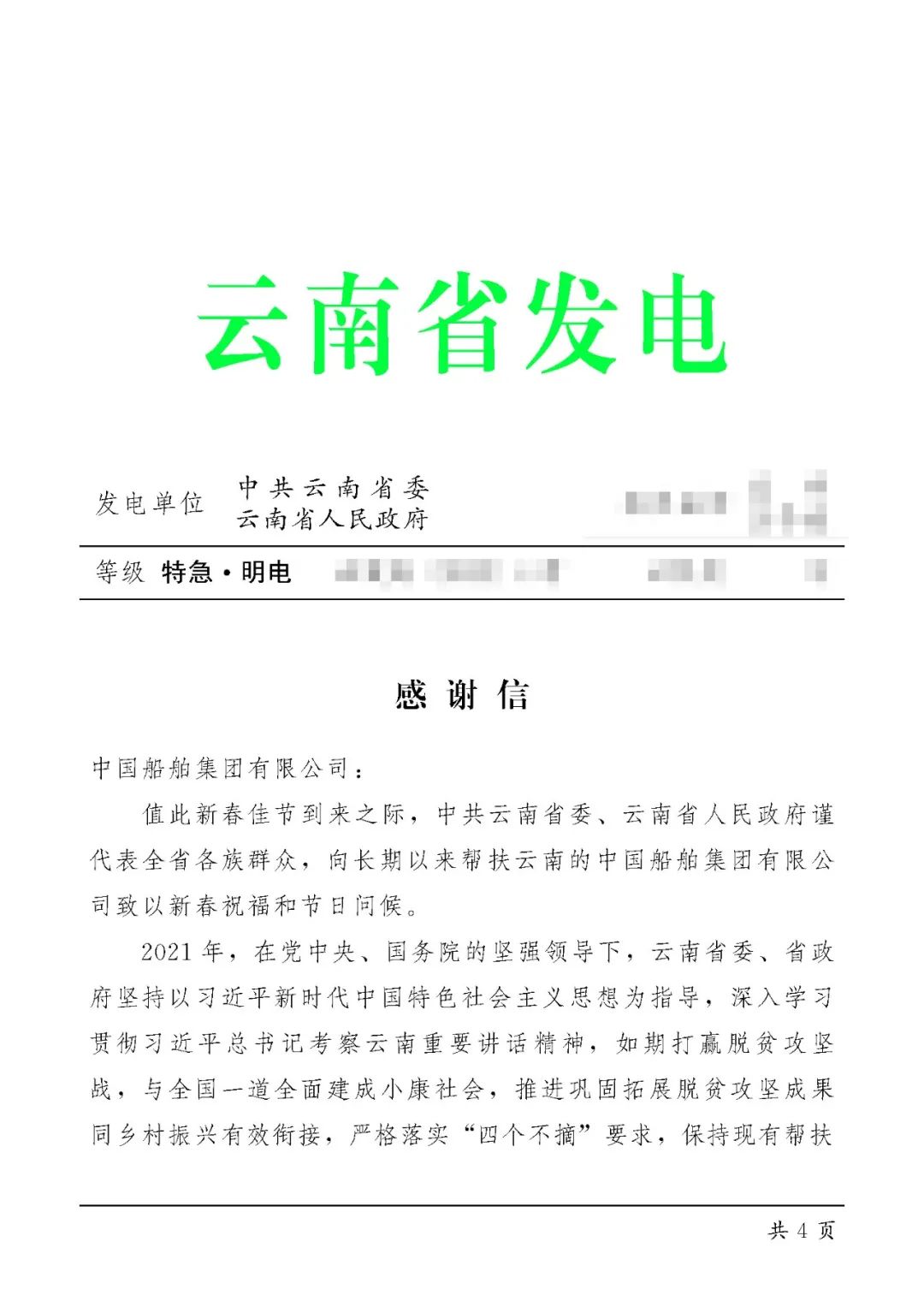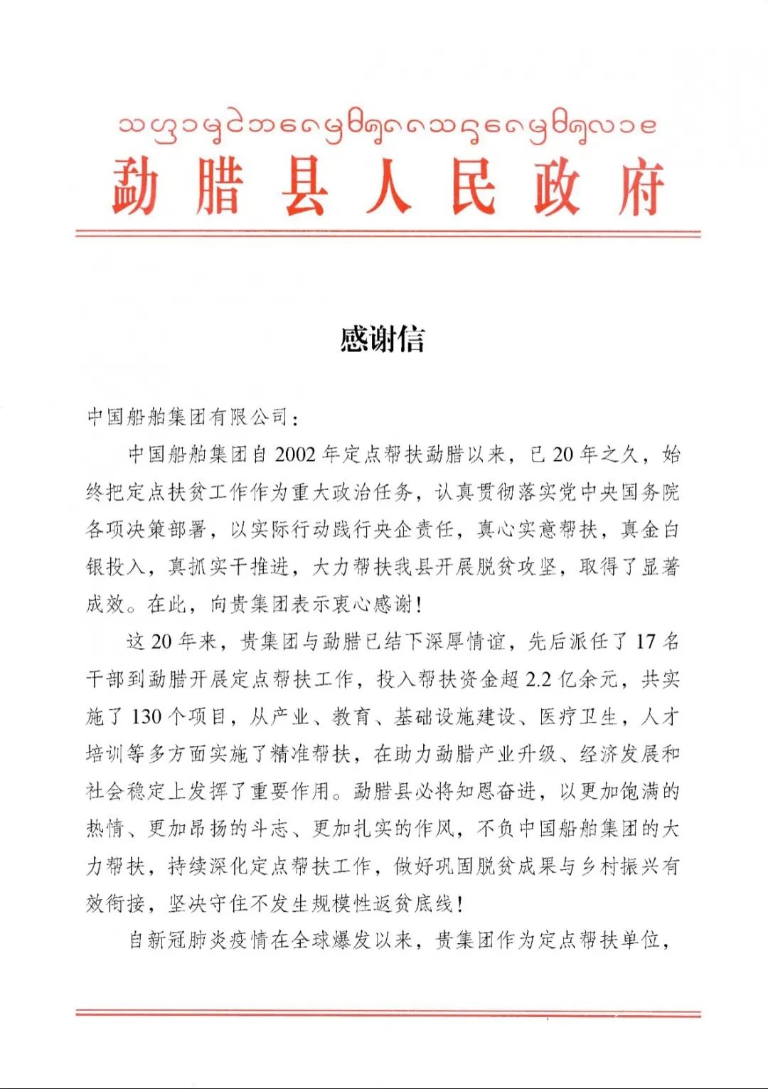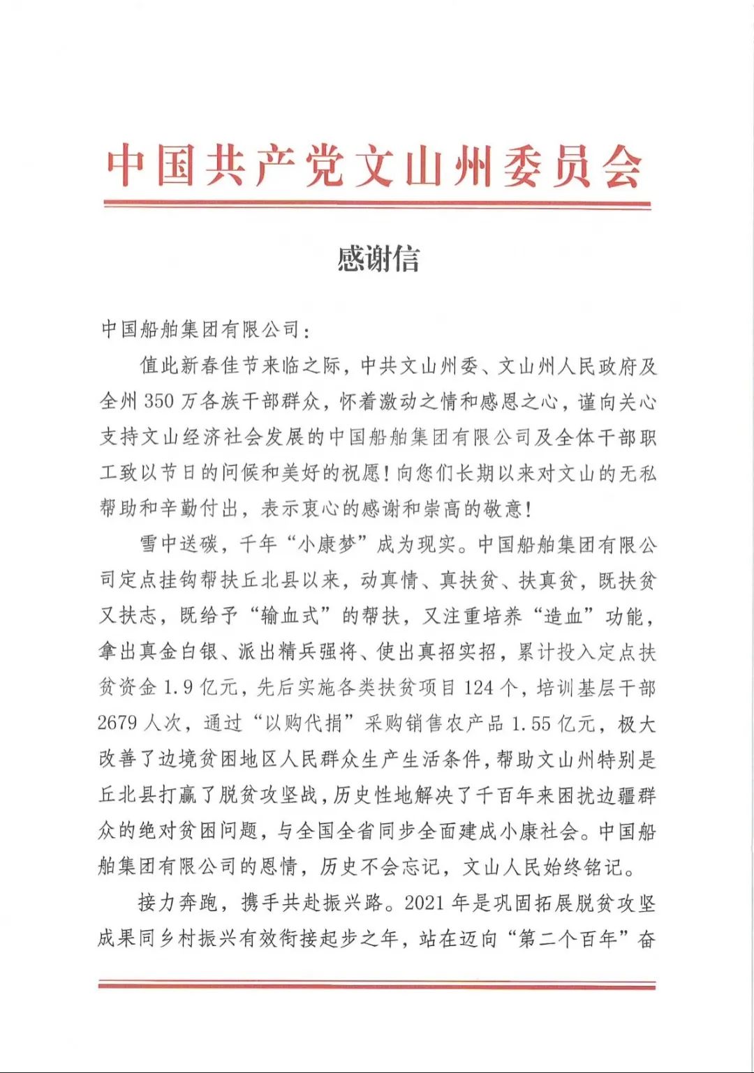 中國船舶集團收到定點幫扶地區感謝信