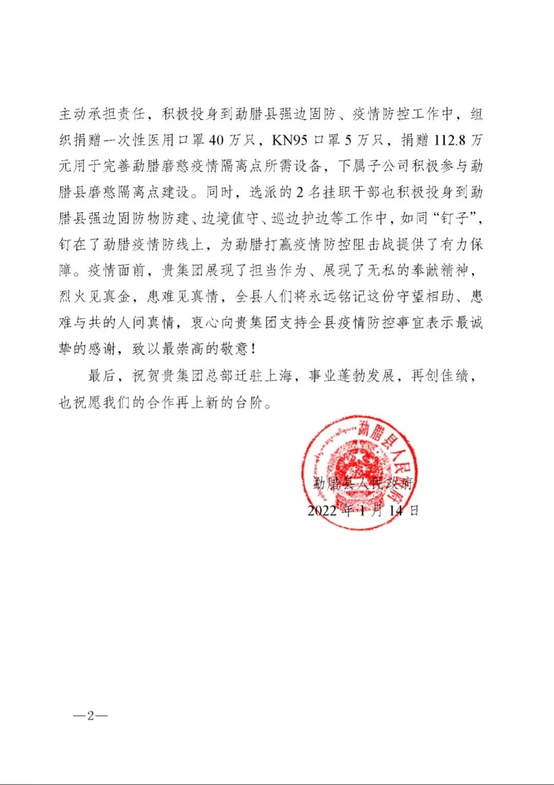 春節前夕,中國船舶集團陸續收到云南省委省政府、文山州委州政府、鶴慶縣委縣政府、勐臘縣政府發來的感謝信,對集團公司長期以來給予鶴慶縣、勐臘縣、丘北縣的傾力幫扶表示衷心感謝和崇高敬意。