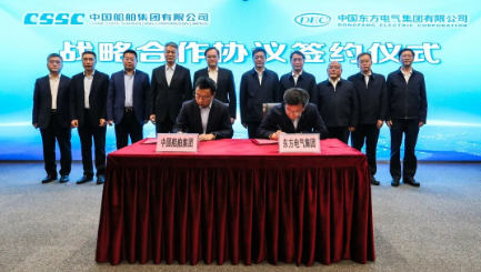 11月3日,中國船舶集團有限公司與中國東方電氣集團有限公司在滬簽署戰略合作協議。中國船舶集團黨組副書記、總經理楊金成,黨組成員、副總經理盛紀綱,東方電氣集團黨組書記、董事長俞培根,黨組成員、副總經理李忠軍出席簽約儀式。盛紀綱、李忠軍分別代表雙方在協議上簽字。