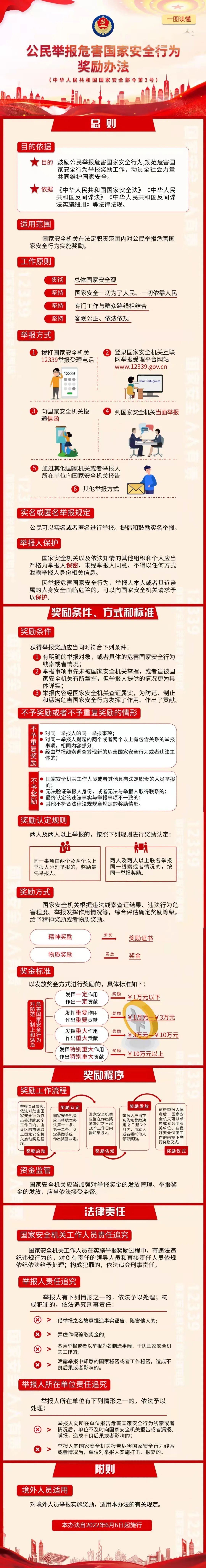 2022年6月6日,國家安全部公布部門規(guī)章《公民舉報危害國家安全行為獎勵辦法》。國家安全一切為了人民,一切依靠人民,讓我們行動起來,共做國家安全的守護(hù)人!