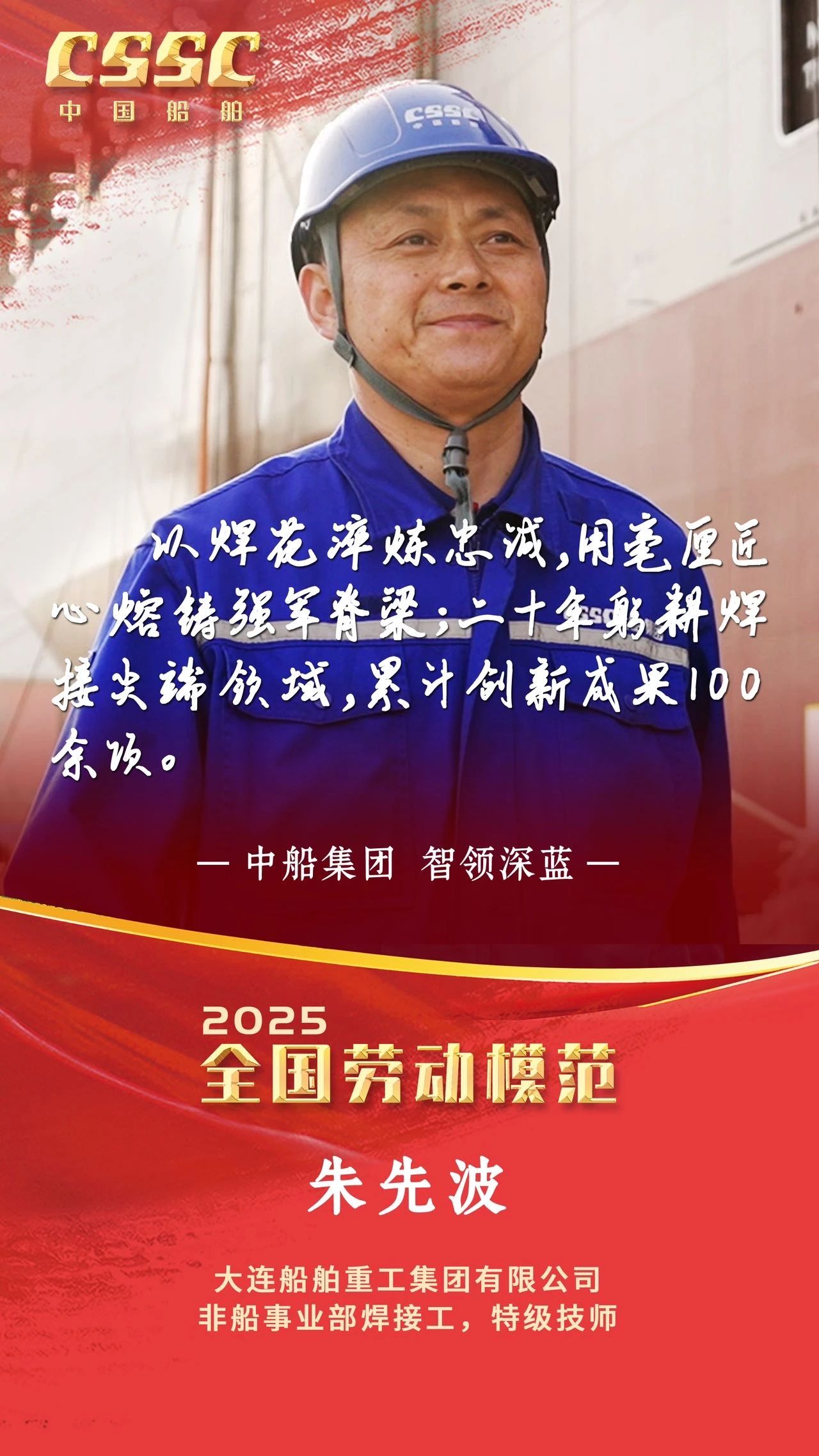 4月28日上午,慶祝中華全國總工會成立100周年暨全國勞動模范和先進工作者表彰大會在人民大會堂隆重舉行。大會宣讀了《中共中央、國務院關于表彰全國勞動模范和先進工作者的決定》。中船集團5人被授予全國勞動模范稱號,4人被授予全國先進工作者稱號。