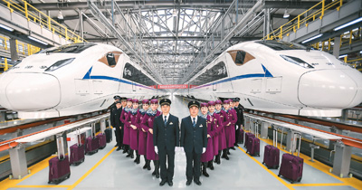 12月4日,西成高鐵首發(fā)乘務(wù)班組在中國鐵路成都局集團(tuán)有限公司成都動車段亮相。(薛玉斌 攝)
