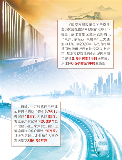 近年來,北京鐵路局先后開行了京津冀貨物快運列車、特快、快速和電商班列,打造了一批現(xiàn)代物流基地,提升改造了一批集裝化設施,為區(qū)域經(jīng)濟發(fā)展提供了強大運力支撐和物流保障。