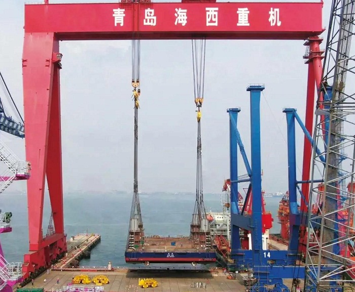 武漢船機完成自升式海上勘探平臺整體吊裝下水重大節點