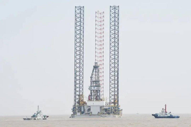 ????“ENERGY EDGE”號鉆井平臺是外高橋造船與山東海洋集團為深耕國家“一帶一路”沿線國家油氣勘探開發進行的第三個合作項目,將為卡塔爾氣體公司提供鉆井作業服務。該平臺從下塢至交付共歷時16個月,創造了外高橋造船自升式鉆井平臺船塢及碼頭的最短建造紀錄。(何寶新 王胤供稿)