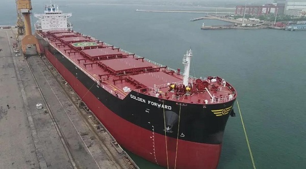 6月11日,由中國船舶集團(tuán)旗下大船集團(tuán)山船重工建造,中船貿(mào)易作為聯(lián)合賣方,為挪威Frontline公司打造的8.2萬噸散貨船“GOLDEN FORWARD”號(hào)交付離廠。