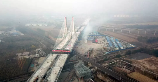 ▲2014年,完成姑嫂樹特大橋175000千牛亞洲之最的球鉸設計制造。武漢姑嫂樹立交橋在京廣線頭頂完成“空中轉體”,下方的京廣高鐵全程保持暢通。姑嫂樹立交橋國內首次在墩頂上進行大噸位混凝土箱梁轉體施工,單個轉體重量創下亞洲之最、世界第二。