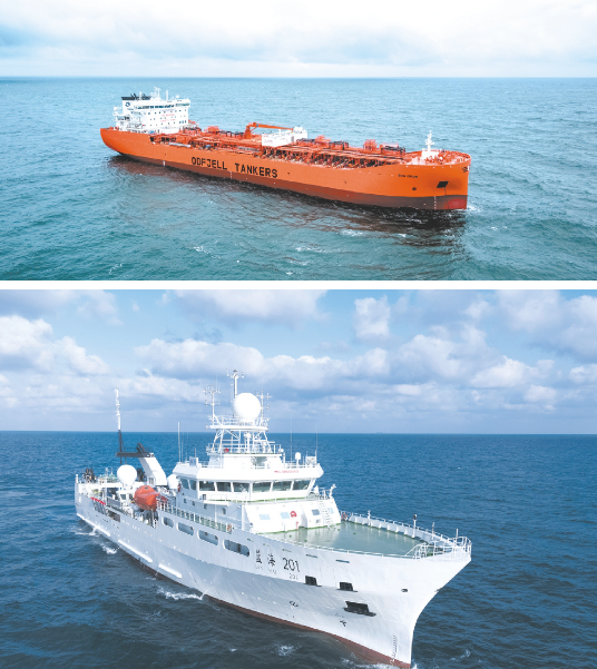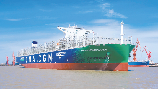——2020年9月,自主建造交付世界上首艘以LNG 為主要?jiǎng)恿Φ膰嵨蛔畲蟆⒓墒澜缱钕冗M(jìn)技術(shù)、環(huán)保性能最優(yōu)的23000TEU雙燃料動(dòng)力集裝箱船“達(dá)飛雅克·薩德”號(hào),并實(shí)現(xiàn)批量交付,進(jìn)一步鞏固了滬東中華在超大型集裝箱船建造領(lǐng)域的行業(yè)領(lǐng)軍地位。這艘被譽(yù)為海上“綠巨人”的雙燃料動(dòng)力集裝箱船,備受業(yè)界廣泛關(guān)注,她的成功建成交付是我國(guó)船舶工業(yè)高質(zhì)量發(fā)展取得的重要成果,彰顯了滬東中華雄厚的建造實(shí)力,也標(biāo)志著中國(guó)船舶集團(tuán)在世界大型集裝箱船領(lǐng)域成功實(shí)現(xiàn)從跟隨到引領(lǐng)。