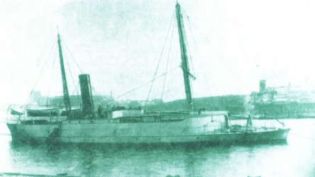 △我國第一艘自行設計建造的淺水炮艇“海東雄”號(蚊子船)