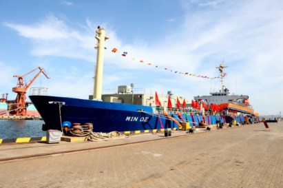 2020年,中國(guó)船舶集團(tuán)旗下大船集團(tuán)將散貨船改裝而成的“民德”號(hào)交付。這是全球首制、具有完全自主知識(shí)產(chǎn)權(quán)的舷側(cè)開(kāi)孔式養(yǎng)殖工船,具有魚(yú)類養(yǎng)殖、餌料加工、活魚(yú)運(yùn)輸?shù)裙δ堋=淮耐瑫r(shí),大船集團(tuán)與東方漁業(yè)簽約10+8艘大型養(yǎng)殖工船項(xiàng)目。