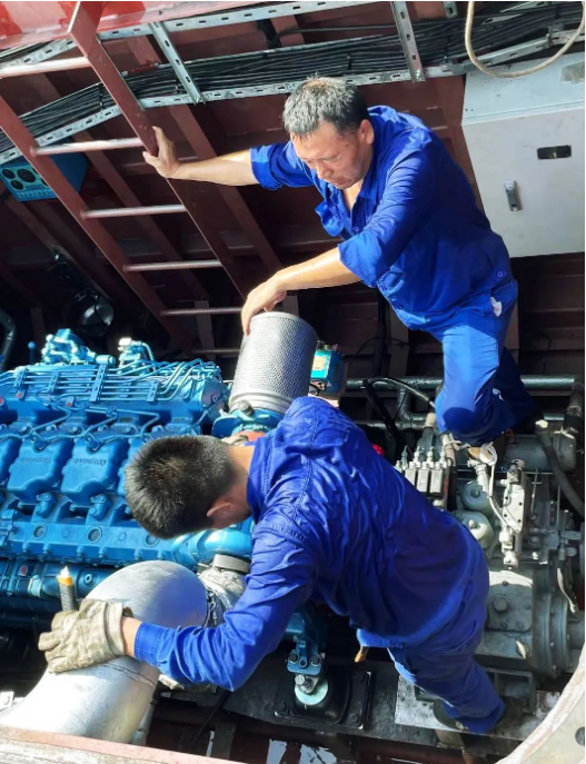 在悶熱且狹小的機艙內,一個簡單的動作,難度系數都要成倍增加,考驗的不僅是船舶電工的體力,還有毅力。