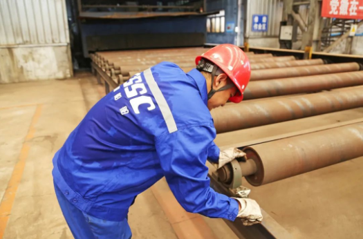 維修工閆師傅正在酷暑中檢修預處理生產線輥道。