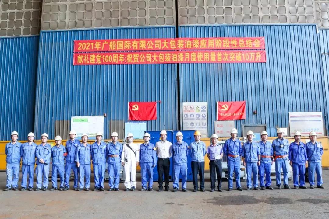 2021年,綠色噴涂技術(shù)在廣船國(guó)際首次實(shí)現(xiàn)規(guī)?;瘧?yīng)用,并先后在造船碼頭、薄板生產(chǎn)線和涂裝工棚等多個(gè)場(chǎng)景得到全面推行。統(tǒng)計(jì)數(shù)據(jù)顯示,廣船國(guó)際采用綠色噴涂技術(shù)共噴涂油漆70萬(wàn)升,使危廢和VOCs減少199噸、生產(chǎn)成本降低266萬(wàn)元、碳排放減少840噸。此舉不僅大大改善了工人的作業(yè)環(huán)境,還有效降低了工人的勞動(dòng)強(qiáng)度,也為下一步探索涂裝施工自動(dòng)化解決了關(guān)鍵技術(shù)難題。