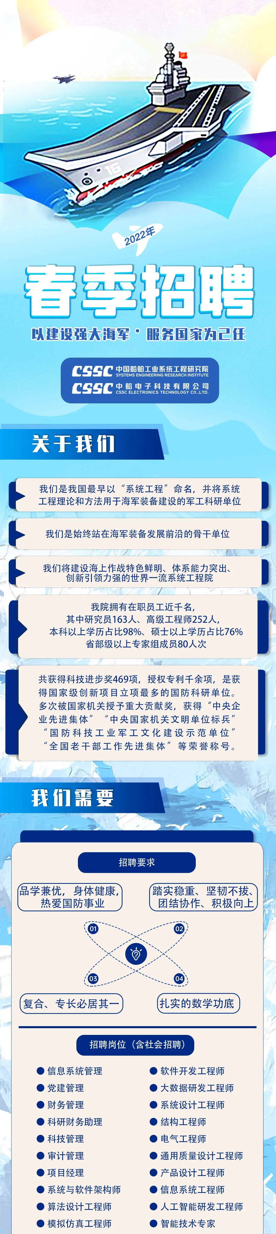 戰艦閃耀,飛鯊翱翔。 大國重器,強國擔當! 這里招賢納士,虛位以待, 讓我們一同感受星辰大海, 讓我們并肩共赴深藍夢想, 這里必將因你而更加精彩!