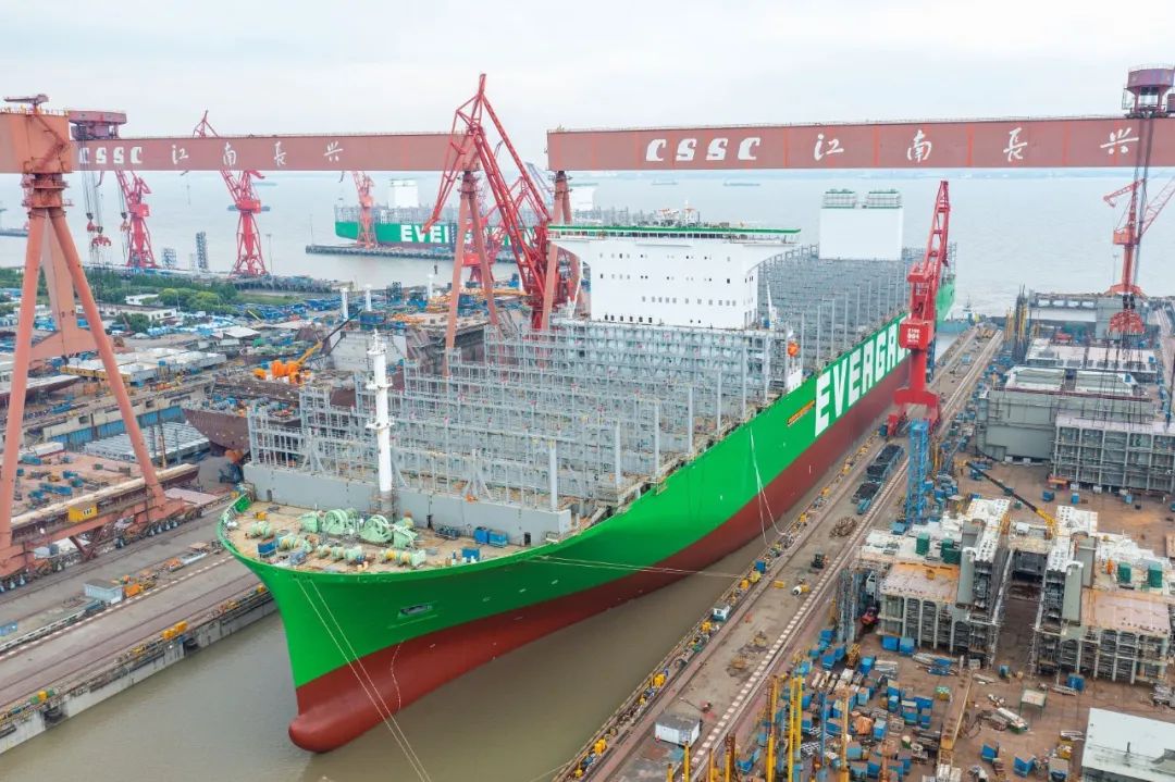 5月19日,中國(guó)船舶集團(tuán)旗下滬東中華雙喜臨門(mén)。其建造的全球最大裝箱量24000TEU超大型集裝箱船2號(hào)船在長(zhǎng)興造船基地順利出塢;建造的13000噸多用途重吊船12號(hào)船在浦東廠區(qū)命名交付,標(biāo)志著該項(xiàng)目圓滿收官。這是滬東中華自復(fù)工復(fù)產(chǎn)以來(lái)首次實(shí)現(xiàn)一天完成兩大生產(chǎn)節(jié)點(diǎn)。