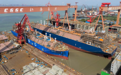 去年11月23日,滬東中華首次實現兩艘LNG整船同時出塢的壯舉,此次再度呈現,有望成為LNG船建造流程中的常規場景,以持續提升建造速度和效率,滿足市場之需。