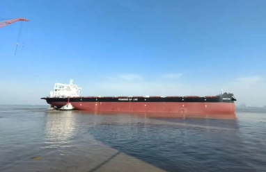該船是外高橋造船建造的首制19萬載重噸液化天然氣(LNG)雙燃料動力好望角型散貨船。自1月12日起,該船項目組用時4天完成加氣相關工作,相繼完成了發電機,鍋爐,主機LNG氣模式系泊試驗等關鍵試驗的報驗工作,并于1月25日開啟試航工作,2月5日,完成油氣二合一試航任務凱旋。