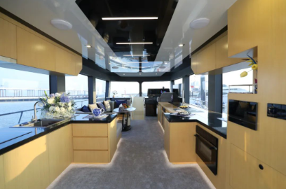 在外觀內(nèi)裝的藝術(shù)設(shè)計方面,則匯集了中國船舶集團旗下科研院所和國外知名公司的優(yōu)秀設(shè)計理念,具有“陽光、優(yōu)雅、現(xiàn)代、簡約”等特征,不僅是一艘綠色環(huán)保智能型游艇,還是一艘具有藝術(shù)觀賞性、舒適性的現(xiàn)代中型游艇。