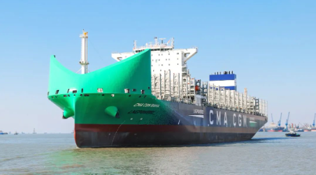 12月7日,由中國船舶集團(tuán)有限公司旗下滬東中華造船(集團(tuán))有限公司聯(lián)合中國船舶工業(yè)貿(mào)易有限公司為法國達(dá)飛集團(tuán)建造的13000TEU液化天然氣(LNG)雙燃料動(dòng)力大型集裝箱船系列首制船“CMA CGM BAHIA”號(hào),在中船長興造船基地命名交付。這是繼全球首創(chuàng)LNG雙燃料動(dòng)力23000TEU超大型集裝箱船,滬東中華完工交付的又一款清潔能源集裝箱船,持續(xù)鞏固了其在大型、超大型雙燃料動(dòng)力集裝箱船建造領(lǐng)域領(lǐng)軍企業(yè)的地位。