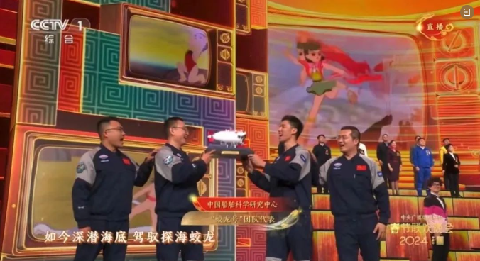 在2024年的春晚舞臺上 ,《看動畫片的我們長大了》這個節目引起觀眾廣泛共鳴。中國船舶集團七〇二所“蛟龍”號載人潛水器研制團隊代表參與其中,給人留下了十分深刻的印象。看《哪吒鬧海》的我們,如今深潛海底、駕馭探海蛟龍。