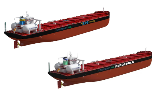2月28日,北海造船聯合中船貿易與新加坡東太平洋航運公司(EPS)新簽4艘21萬噸Ammonia DF/DF Ready散貨船建造合同;2月29日,北海造船再次聯合中船貿易,與新加坡百國山航運公司(Berge Bulk)成功簽署2艘21萬噸Ammonia Ready散貨船建造合同。