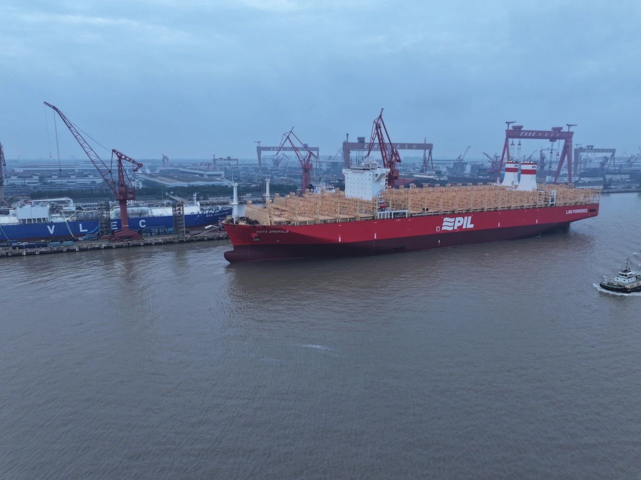10月15日,中國船舶集團旗下江南造船聯合中船貿易為太平船務建造的14000TEU液化天然氣(LNG)雙燃料動力系列集裝箱船首制船“KOTA EAGLE(鷹城)”號和2號船“KOTA EMERALD(翠城)”號同日命名,其中“KOTA EAGLE(鷹城)”號于當日簽字交付。