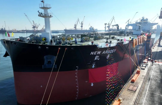 12月9日,中國船舶集團所屬中國重工大連造船為招商輪船建造的11.5萬噸原油船“凱舟”號命名交付。這是大連造船山船重工今年交付的第15艘船舶,標志著山船重工超額完成全年交船目標任務。