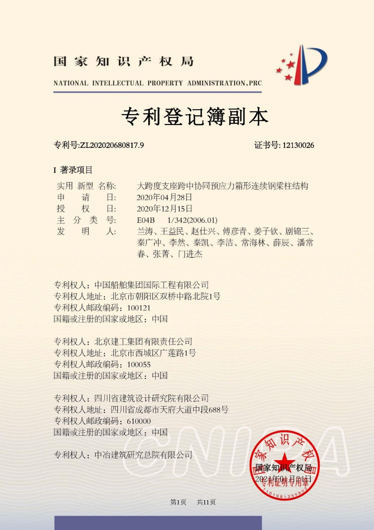 今年6月,國(guó)家知識(shí)產(chǎn)權(quán)局公布第二十五屆中國(guó)專利獎(jiǎng)授獎(jiǎng)決定,由中船集團(tuán)旗下中船國(guó)際工程主導(dǎo)申報(bào)的專利《大跨度支座跨中協(xié)同預(yù)應(yīng)力箱形連續(xù)鋼梁柱結(jié)構(gòu)》(專利號(hào):ZL202020680817.9)榮獲本屆中國(guó)專利銀獎(jiǎng)。該獎(jiǎng)項(xiàng)由國(guó)家知識(shí)產(chǎn)權(quán)局與世界知識(shí)產(chǎn)權(quán)組織聯(lián)合設(shè)立,是我國(guó)專利領(lǐng)域的最高榮譽(yù)。今天,讓我們走進(jìn)中船國(guó)際工程鋼結(jié)構(gòu)工程設(shè)計(jì)與研發(fā)團(tuán)隊(duì),聆聽(tīng)他們的奮斗故事。
