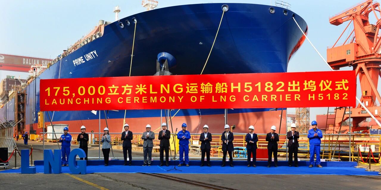 LNG運(yùn)輸船H5182出塢,全船貨物圍護(hù)系統(tǒng)主工序周期縮短20天,有效提速生產(chǎn)節(jié)奏。