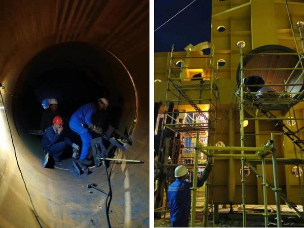 ????趕節點期間,項目團隊主動放棄節假日休息,每天通宵輪流作業。一線工班和施工隊人員更是不論白天黑夜,持續做好吊裝分段,合攏口裝配焊接等工作,為項目開展不斷奮戰。