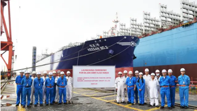 6月28日,中國船舶集團旗下江南造船順利完成一艘84000立方米超大型液化氣船(VLGC)和一艘23000TEU集裝箱船出塢,兩艘86000立方米VLGC半船起浮。至此,江南造船