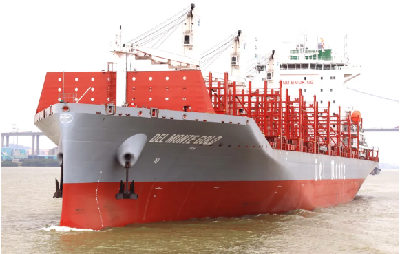 近日,中國船舶集團(tuán)旗下黃埔文沖為美國Del Monte公司建造的600FEU全冷藏集裝箱船首制船“DEL MONTE GOLD”號交付。該型船總長192米,型寬30米,設(shè)計(jì)吃水9.3米,為國際遠(yuǎn)洋冷藏集裝箱船,全部貨柜箱均為冷藏集裝箱,是一款冷箱量大、裝載靈活、便于維護(hù)的綠色環(huán)保型船舶。
