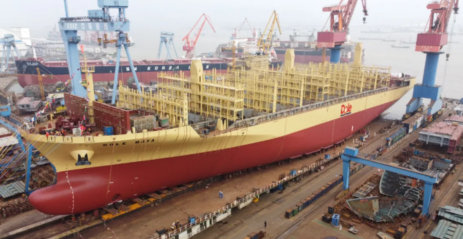 8月26日,中國船舶集團旗下中船澄西為美國Dole公司建造的首艘910RFEU支線冷藏集裝箱船下水,標志著中船澄西成功進入支線冷藏集裝箱船市場,實現在建船的三大主流常規船型全覆蓋。