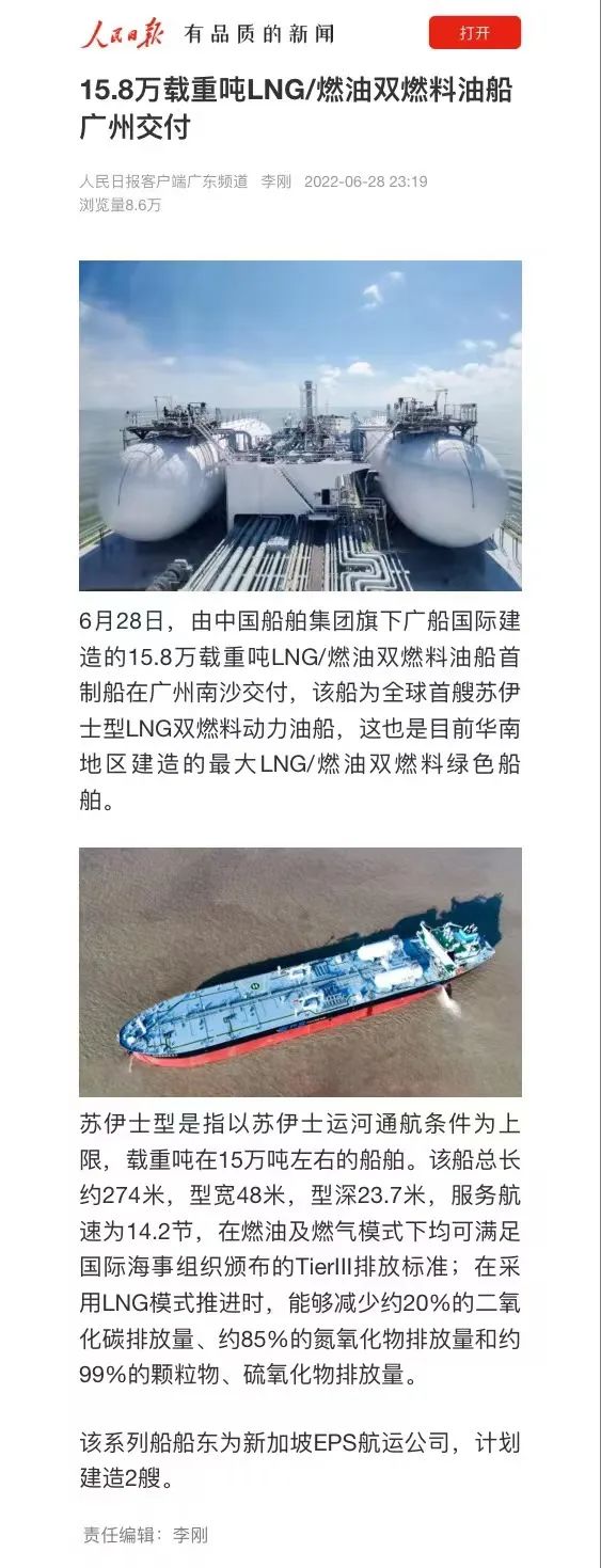 2022年5月30日交付,標志著廣船國際成功攻克LNG雙燃料動力船舶的研發和建造技術,成為了華南地區首家自主研發和建造LNG雙燃料成品油船的船企。
