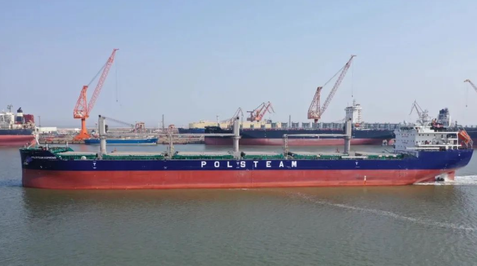 近日,中國船舶集團大連造船所屬山船重工為波蘭PZM公司建造的3.7萬噸大湖型散貨船2號船完成試航。