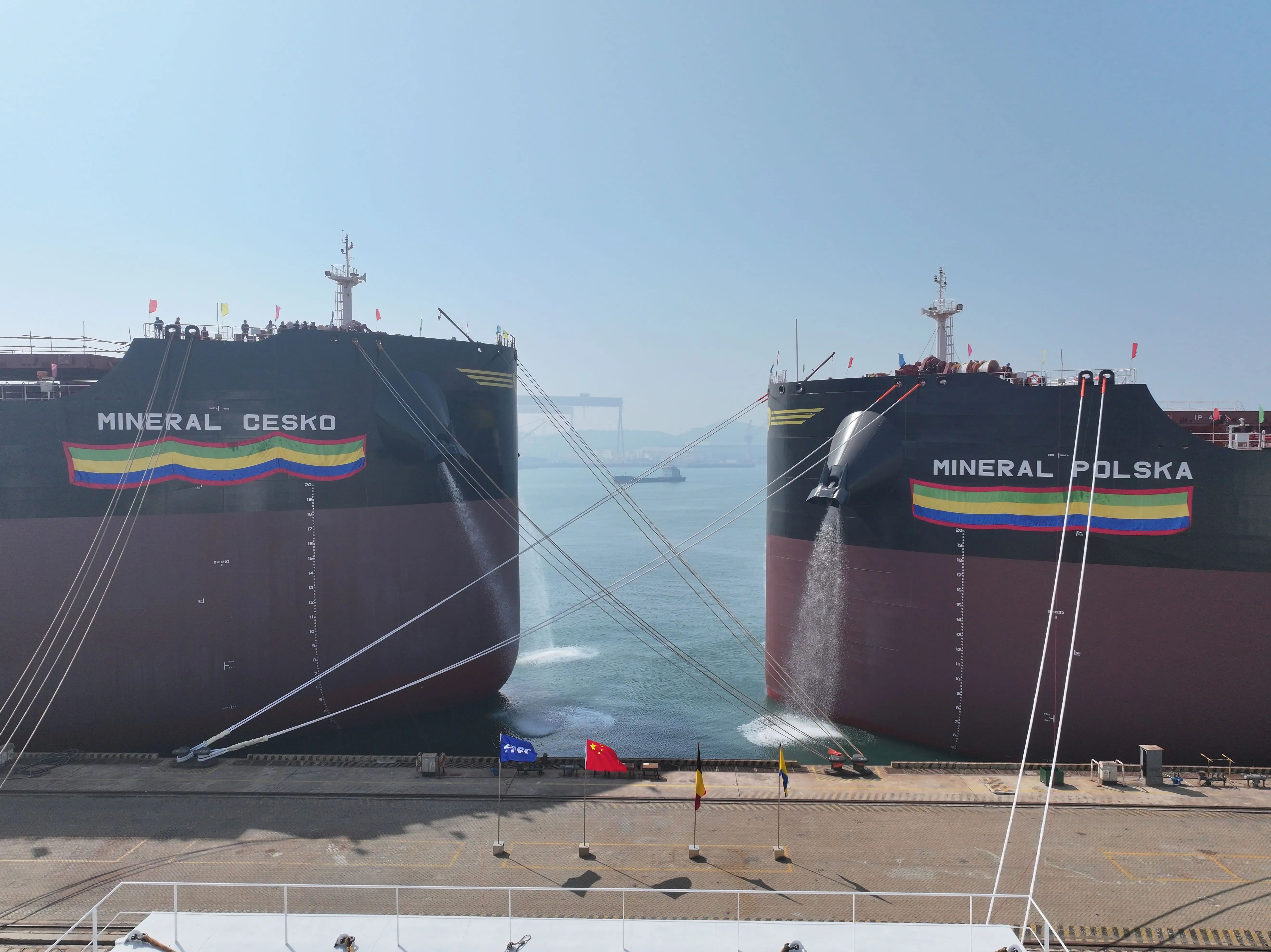 5月20日,北海造船為比利時(shí)CMB.TECH公司建造的2艘21萬噸氨燃料預(yù)留散貨船“MINERAL?CESKO”號和“MINERAL?POLSKA”號同日命名。