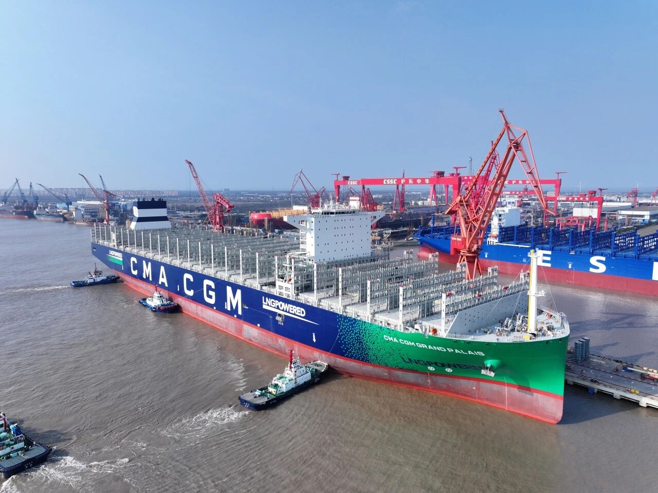 3月17日,中船集團旗下滬東中華建造的24000TEU液化天然氣(LNG)雙燃料動力集裝箱船“達飛 巴黎大皇宮”號,提前7個半月命名交付。該船是滬東中華為法國達飛集團建造的第20艘大型集裝箱船,為中法兩國在綠色航運與高端制造領域的深度合作增添新的典范。