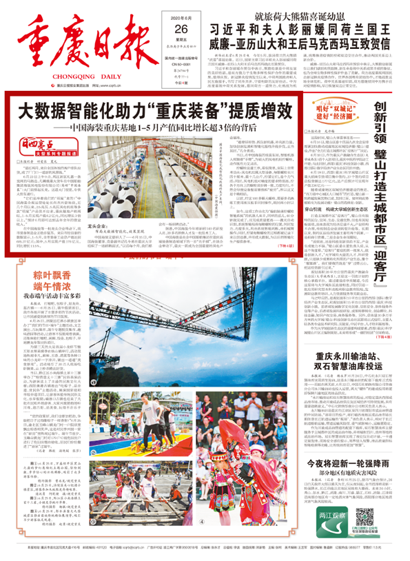 近日,重慶日報頭版頭條以《大數據智能化助力“重慶裝備”提質增效——中國海裝重慶基地1-5月產值同比增長超3倍的背后》,為題對中國船舶集團旗下中國海裝進行了報道,文章對后疫情時代,中國海裝如何履行央企責任,做好“六穩”工作,落實“六?!比蝿?,助力重慶裝備制造業穩步復蘇,奮力實現高質量發展的舉措與成效進行了深入分析。